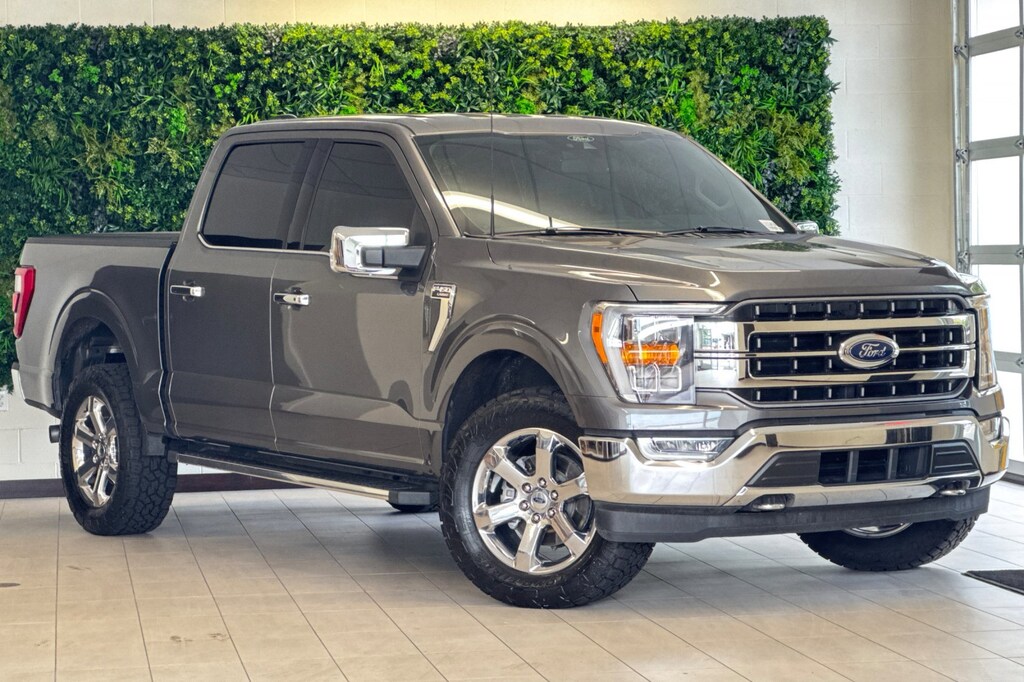 Certified. Carbonized Gray Metallic 2022 Ford F-150 Lariat 4WD 10-Speed Automatic 3.5L V6 EcoBoost ***CLEAN AUTOCHECK***, 1 OWNER, SUPER LOW MILES, Ford Factory Certified!!, BLIND SPOT MONITOR, F-150 Lariat, 4D SuperCrew, 3.5L V6 EcoBoost, 10-Speed Automatic, 4WD, Carbonized Gray Metallic, Medium Dark Slate Leather, 4x4 FX4 Off-Road Bodyside Decal, 6" Bright Polished Running Board, 7 Speakers, Adjustable pedals, Auto High-beam Headlights, Auto Start-Stop Removal, Auto-dimming door mirrors, Auto-dimming Rear-View mirror, Automatic temperature control, Brake assist, Bumpers: chrome, Chrome 2-Bar Grille w/4 Minor Bars, Chrome Door & Tailgate Handles w/Body-Color Bezel, Chrome Single-Tip Exhaust, Chrome Skull Caps on Exterior Mirrors, Class IV Trailer Hitch Receiver, Electronic Locking w/3.31 Axle Ratio, Electronic Stability Control, Equipment Group 501A Mid, Exterior Parking Camera Rear, Front dual zone A/C, Fully automatic headlights, FX4 Off-Road Package, Heated door mirrors, Heated front seats, Hill Descent Control, Illuminated entry, Lariat Chrome Appearance Package, Leather-Trimmed 40/20/40 Front Seat, LED Sideview Mirror Spotlights, Memory seat, Monotube Rear Shocks, Off-Road Tuned Front Shock Absorbers, Onboard 400W Outlet, Panic alarm, Pedal memory, Power door mirrors, Power driver seat, Power passenger seat, Power windows, Radio: B&O Sound System by Bang & Olufsen, Rear step bumper, Remote keyless entry, Rock Crawl Mode, Security system, Speed control, Split folding rear seat, Steering wheel mounted audio controls, SYNC 4 w/Enhanced Voice Recognition, Telescoping steering wheel, Tilt steering wheel, Tough Bed Spray-In Bedliner, Tray Style Floor Liner (47W), Turn signal indicator mirrors, Universal Garage Door Opener, Ventilated front seats, Wheels: 20" Chrome-Like PVD.
