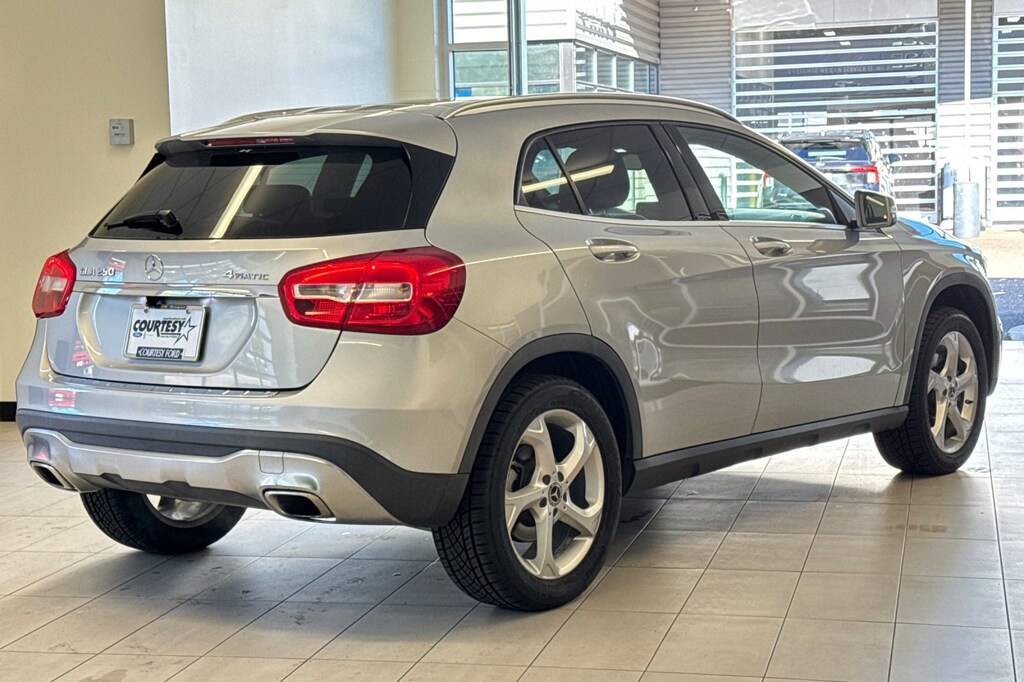 Silver 2018 Mercedes-Benz GLA 250 4MATIC® 4MATIC® 4MATIC® 7-Speed Automatic 2.0L I4 DI Turbocharged NEW TIRES, NAVIGATION PACKAGE, SUPER LOW MILES, SUNROOF, LOCAL TRADE IN, SERVICED REGULARLY, GLA 250 4MATIC®, 4D Sport Utility, 2.0L I4 DI Turbocharged, 7-Speed Automatic, 4MATIC®, Silver, 4-Way Lumbar Support, 8 Speakers, 8" Color Display Upgrade, Automatic temperature control, Axle Ratio: 4.60, Blind Spot Assist, Brake assist, Bumpers: body-color, Delay-off headlights, Electronic Stability Control, Emergency communication system, Exterior Parking Camera Rear, Four wheel independent suspension, Front dual zone A/C, Front fog lights, Front Power Seats, Fully automatic headlights, HANDS-FREE ACCESS, Heated door mirrors, Heated Front Seats, Illuminated entry, KEYLESS GO®, MB-Tex Upholstery, Memory seat, Navigation System, Panic alarm, Power door mirrors, Power driver seat, Power Driver Seat w/Memory, Power Liftgate, Power passenger seat, Power Passenger Seat w/Memory, Power windows, Premium audio system: COMAND®, Premium Package, Radio: Audio 20 CD w/Garmin Navigation Pre-Wiring, Rain sensing wipers, Rear fog lights, Remote keyless entry, Roof rack: rails only, Security system, Single CD Player, SIRIUSXM Satellite Radio, Speed control, Speed-sensing steering, Split folding rear seat, Steering wheel mounted audio controls, Telescoping steering wheel, Tilt steering wheel, Turn signal indicator mirrors, Variably intermittent wipers.
